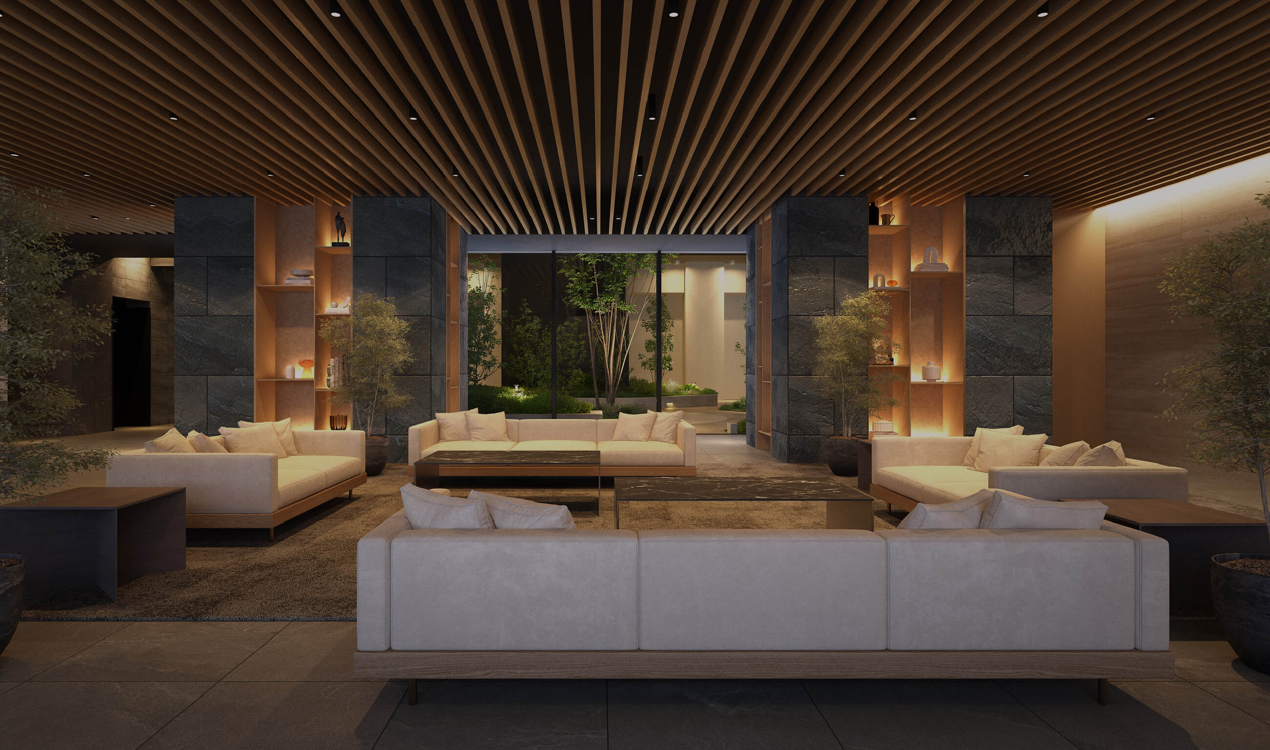 四季の美しさに抱かれ、凛とした安らぎを刻む迎賓空間。