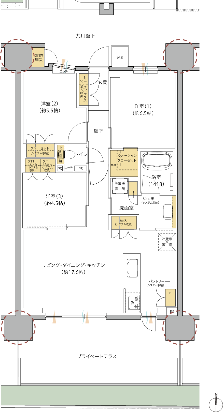 - □プライベートテラス面積/