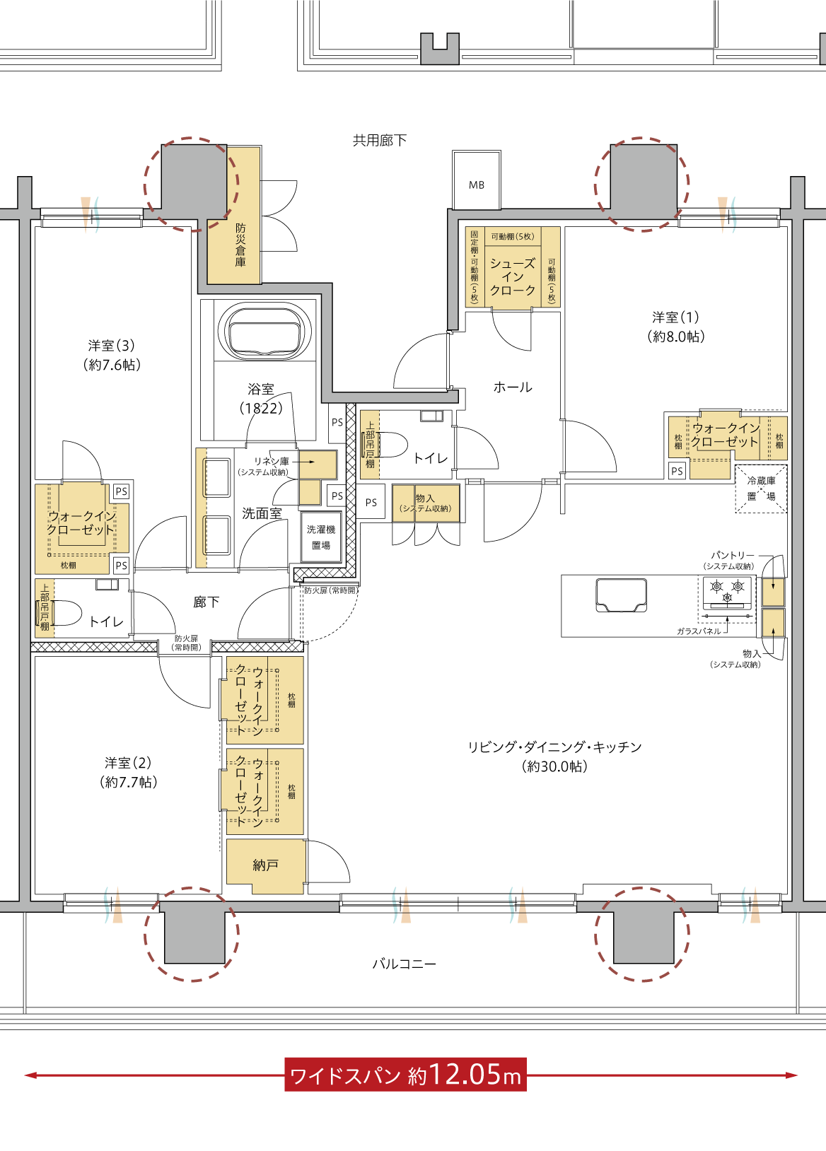 ※掲載の間取りは、計画段階の図面を基に描き起こしたもので、一部変更が生ずる場合があります。