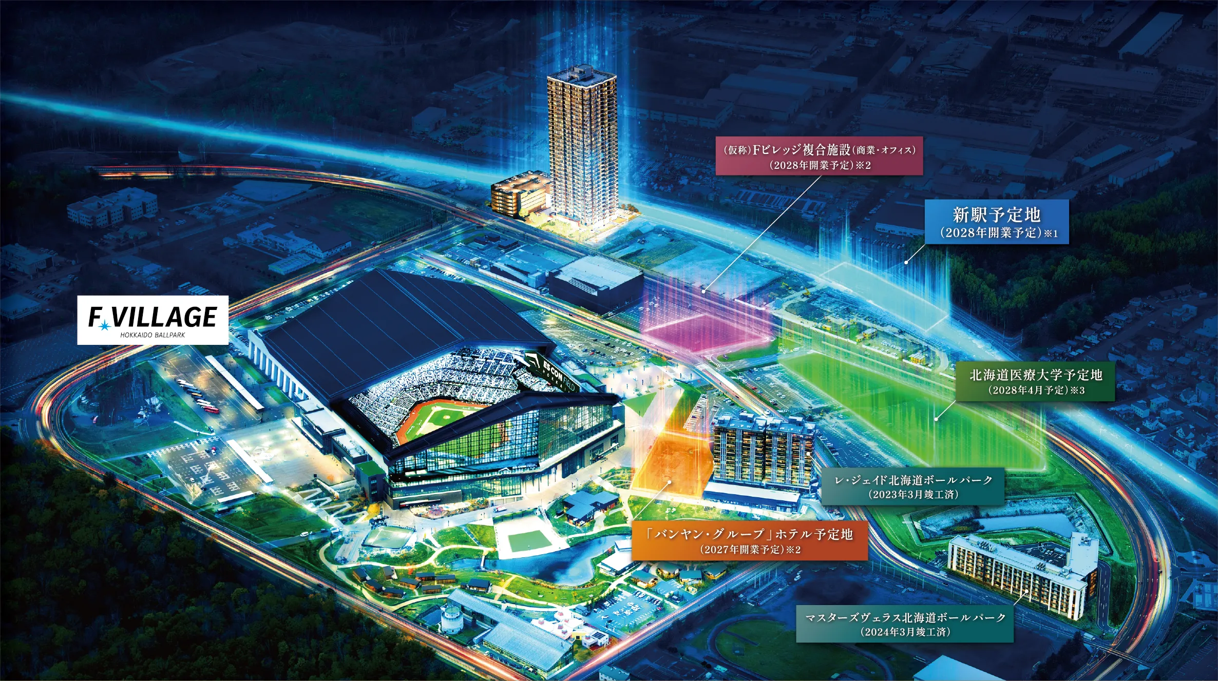 「北海道ボールパークFビレッジ」は、球場を中心に、