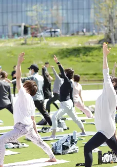 屋外でのヨガ教室や、スポーツ、ウェルネス、 レジャー、食の体験など年間を通じて愉しめる 参加・体験型のイベントも開催されています。