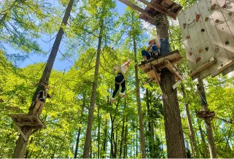 約1,900㎡を誇るボーネルンド最大級の屋内外 あそび場には、各種遊具配置。天候を心配する ことがない屋内には、日本初登場の大きな お城があったり、屋外には高さ6mのジャイアント ドームなど、1日中子どもたちが楽しめる場所に。