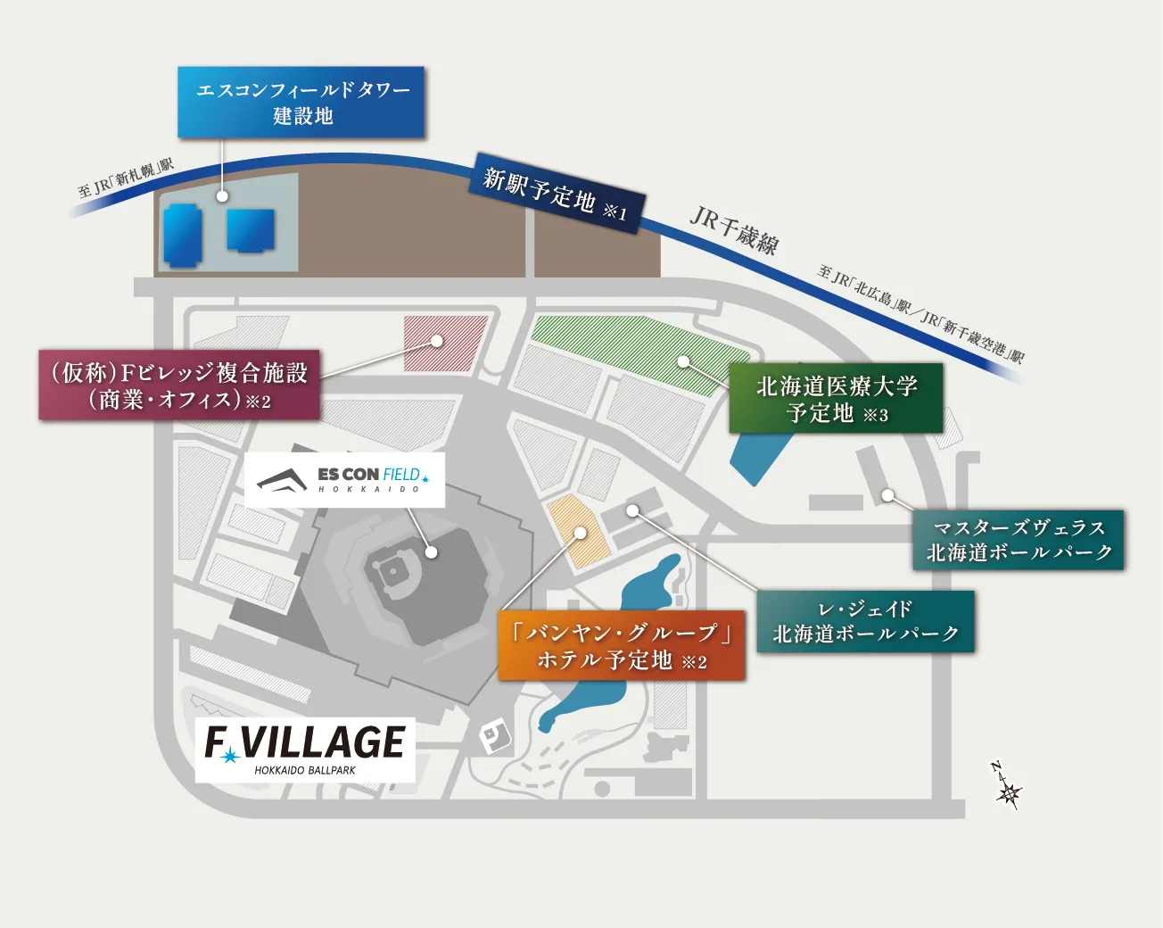 魅力ある街づくりの実現を目指した、Fビレッジエリア内を予定地とする北海道医療大学のキャンパス・病院新設などの計画について、基本同意締結が発表されています。※出典:北海道医療大学ホームページ