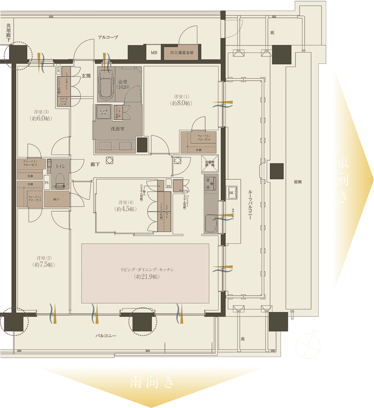 最上階・南東向き住戸・100㎡超の邸宅が叶える、