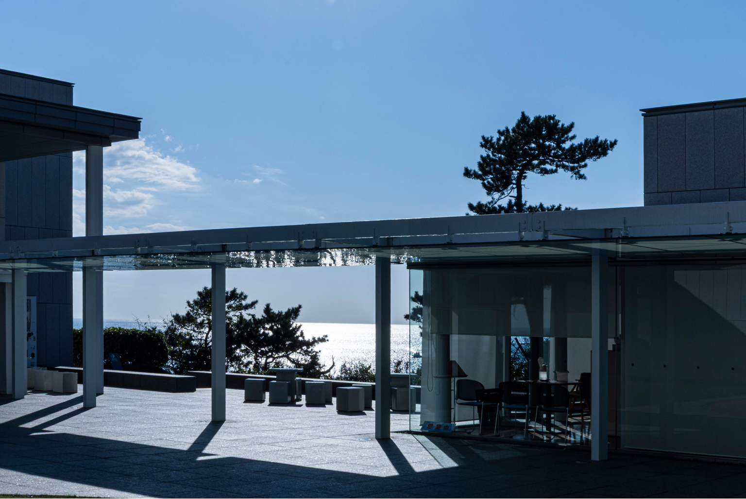 併設のレストランからも海を望むことができ、訪れる人は芸術と自然という二つの体験を、ひとつの時間として重ね合わせながら過ごすことができるのです。