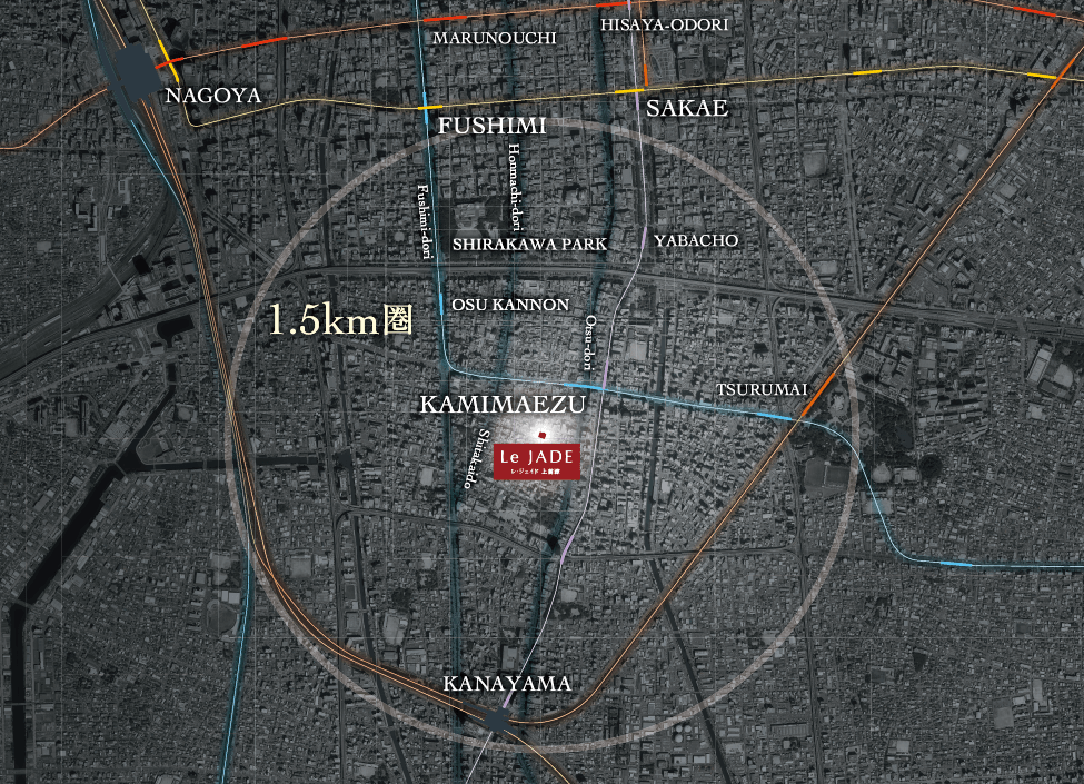 栄・伏見・金山へも約1.5km圏(※1)とする