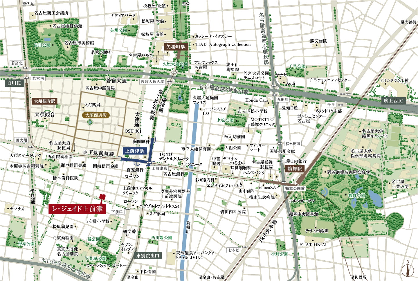「レ・ジェイド上前津」は、熱田台地の上に誕生。