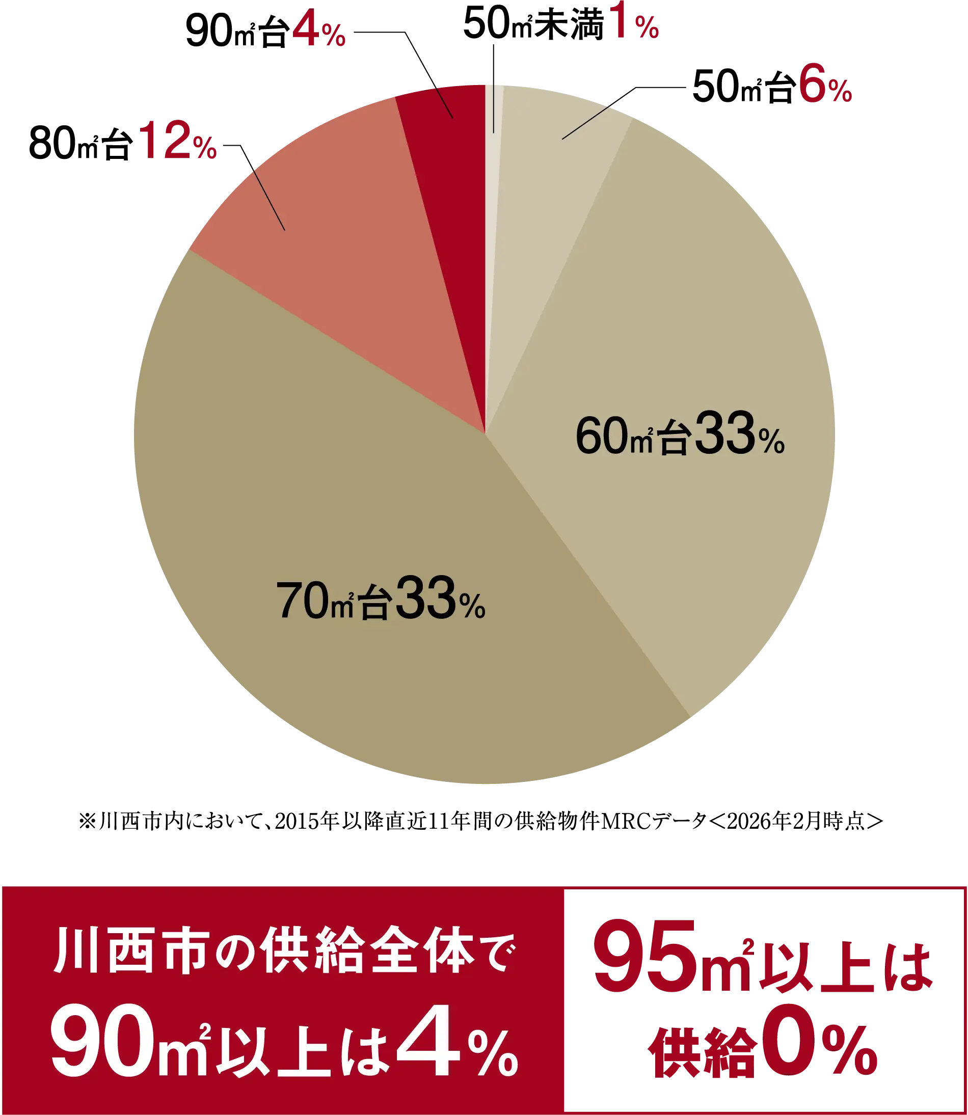 川西市における専有面積供給比率。