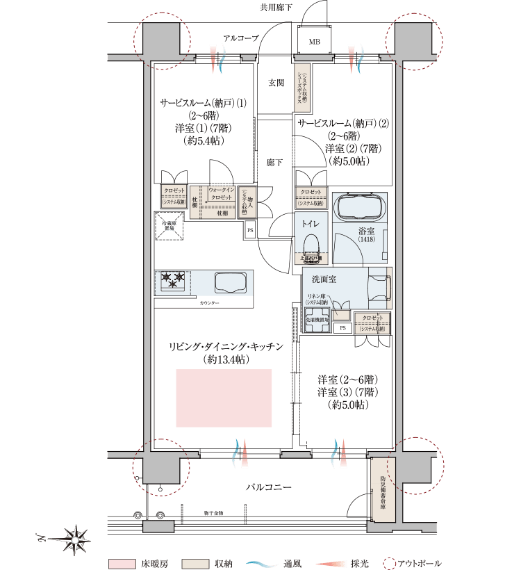 3LDK+WIC(7階) 1LDK+2S+WIC(2~6階)