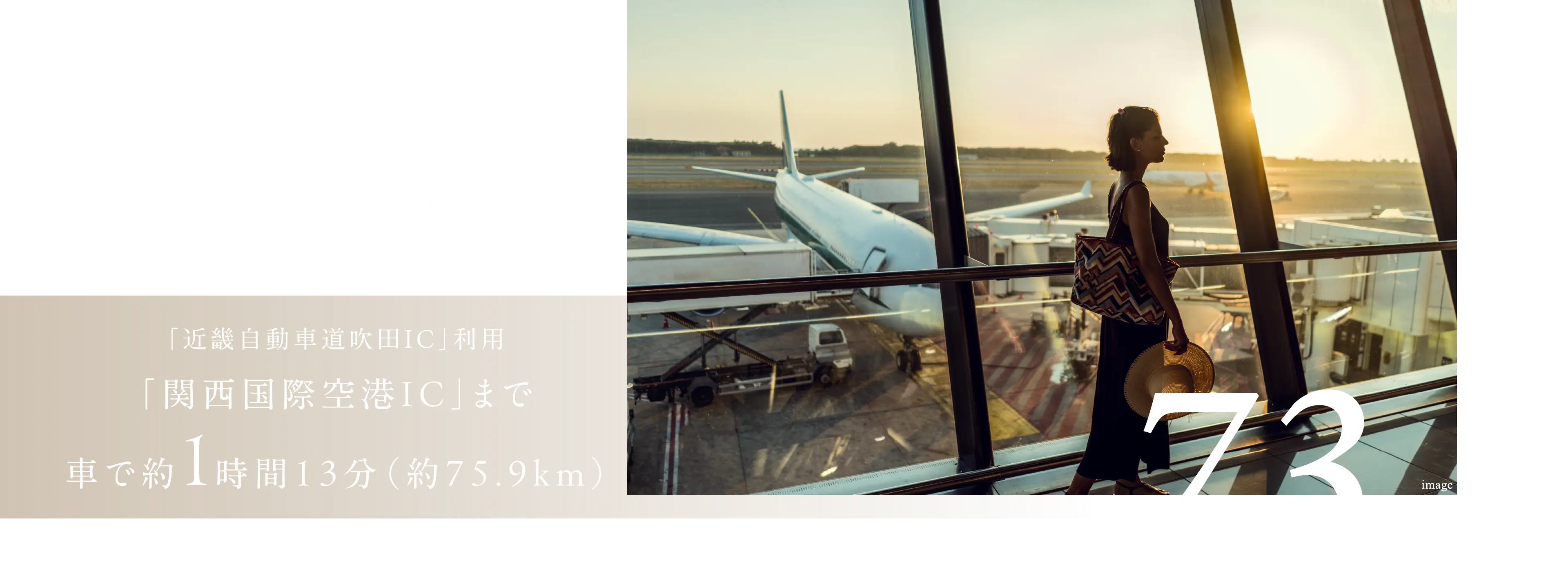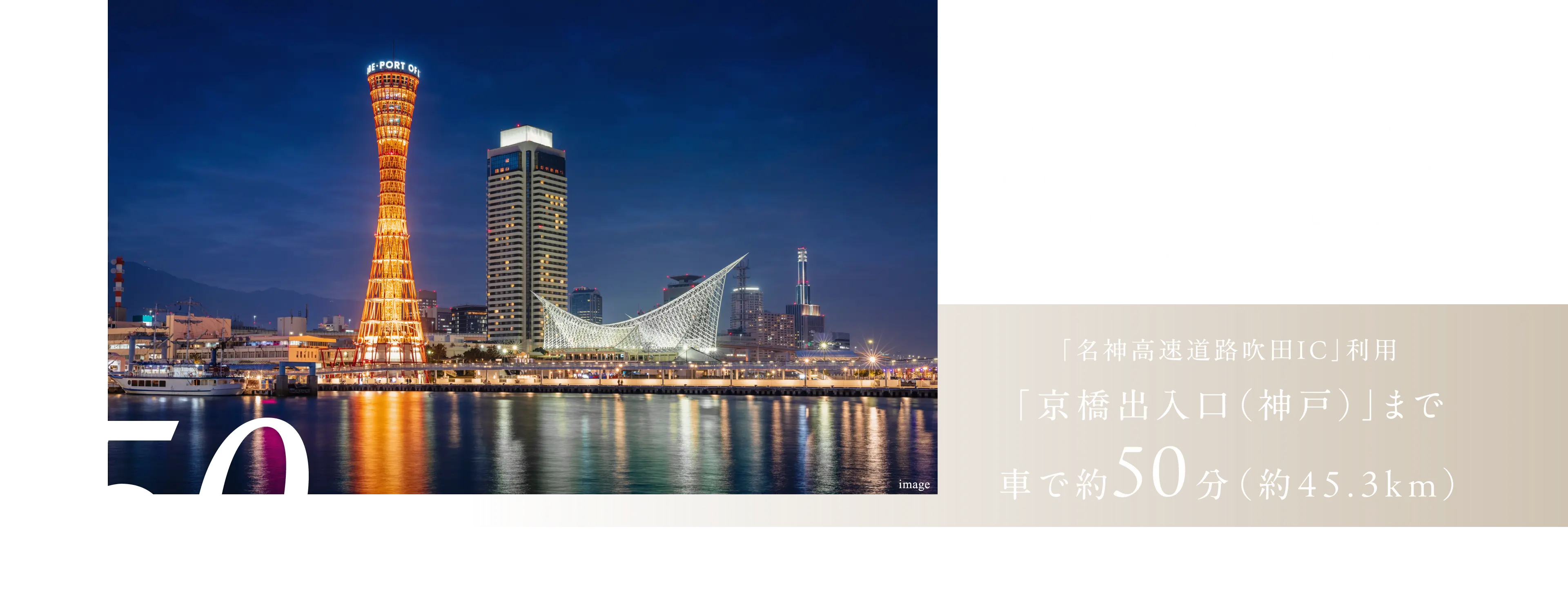 マイカーをご利用の場合、計画地から新御堂筋の利用で大阪都心へ快適にアクセス。また、中国自動車道や名神高速道路、新名神高速道路、近畿自動車道といったネットワークを柔軟に使いこなせ、様々な街へ気軽に結ばれるポジションです。