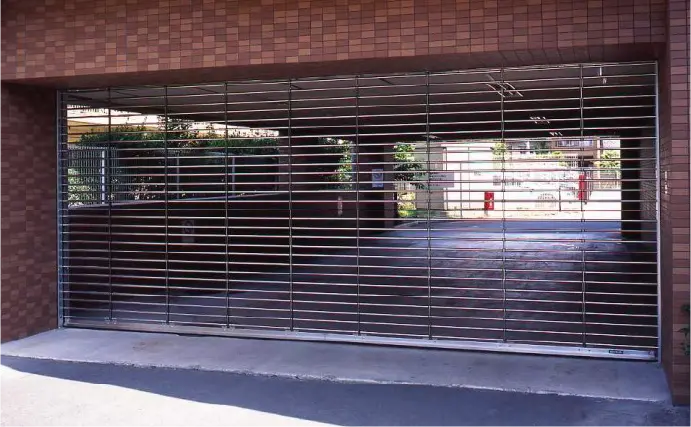 駐車場出入口にグリルシャッターを設けセキュリティを強化しています。外部からの侵入を防ぐ安心のセキュリティです。