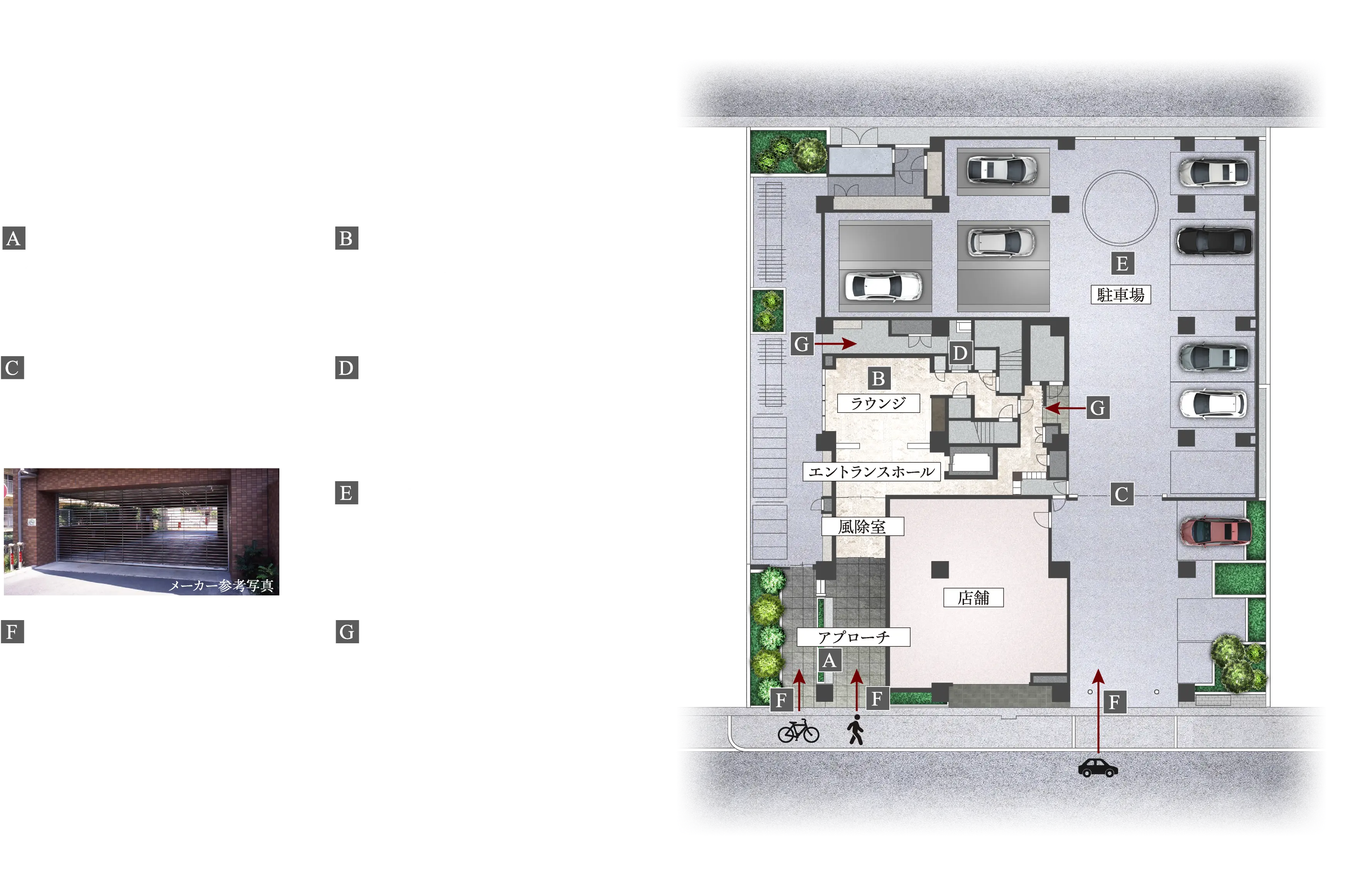 ブランケット照明と花崗岩が導く上質のアプローチ。