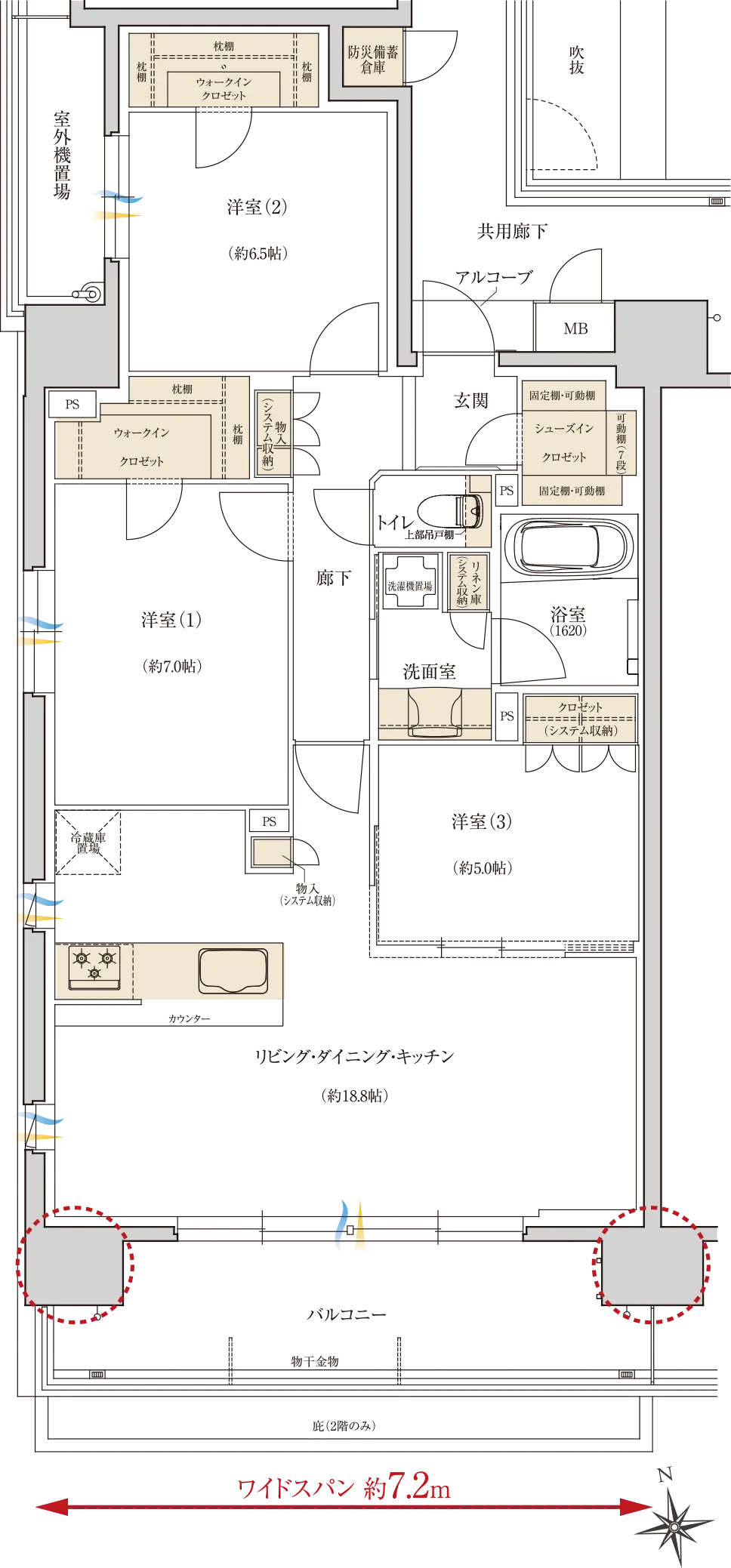 ※防災備蓄倉庫面積0.72㎡(約0.21坪)を含む