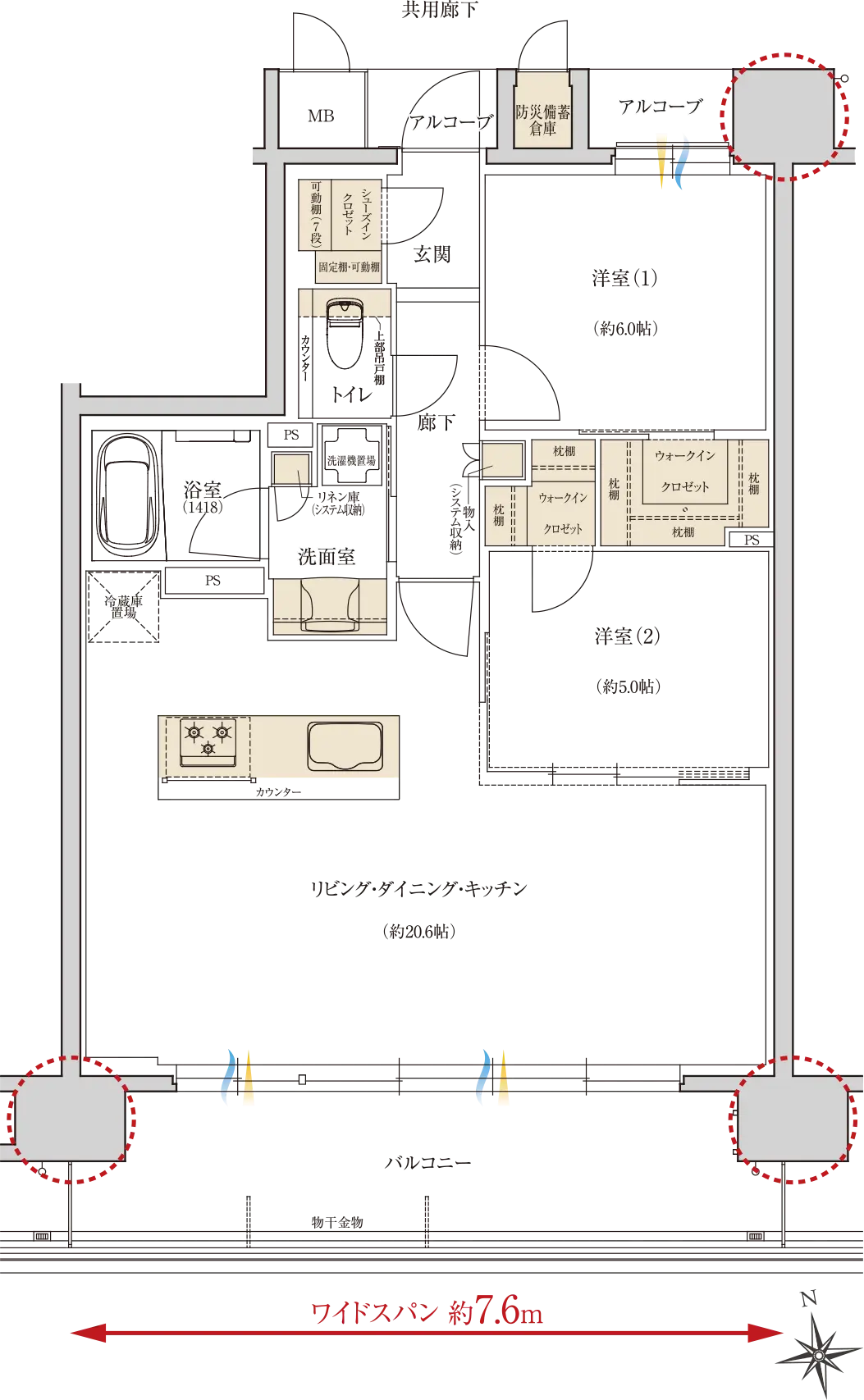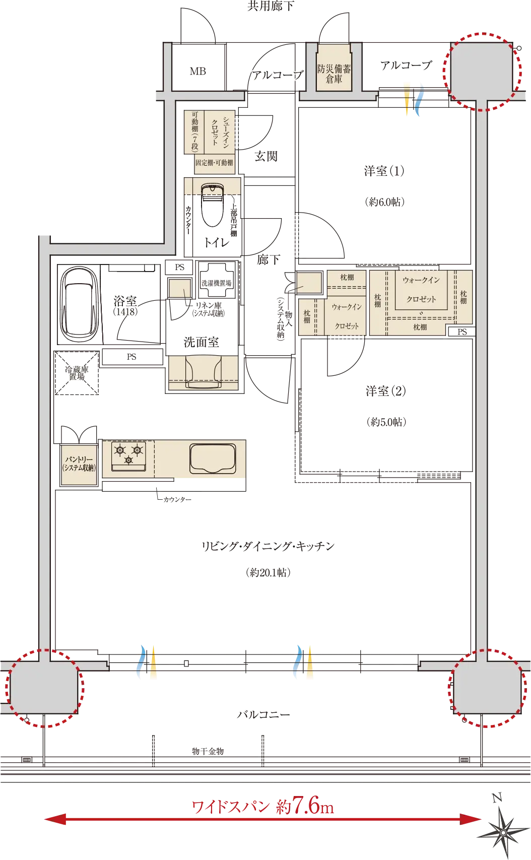 ※防災備蓄倉庫面積0.68㎡(約0.20坪)を含む