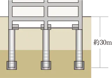 杭の先端を地表深さ約30mの支持層まで届かせて、耐震性が向上する安定した基礎構造を可能にしています。