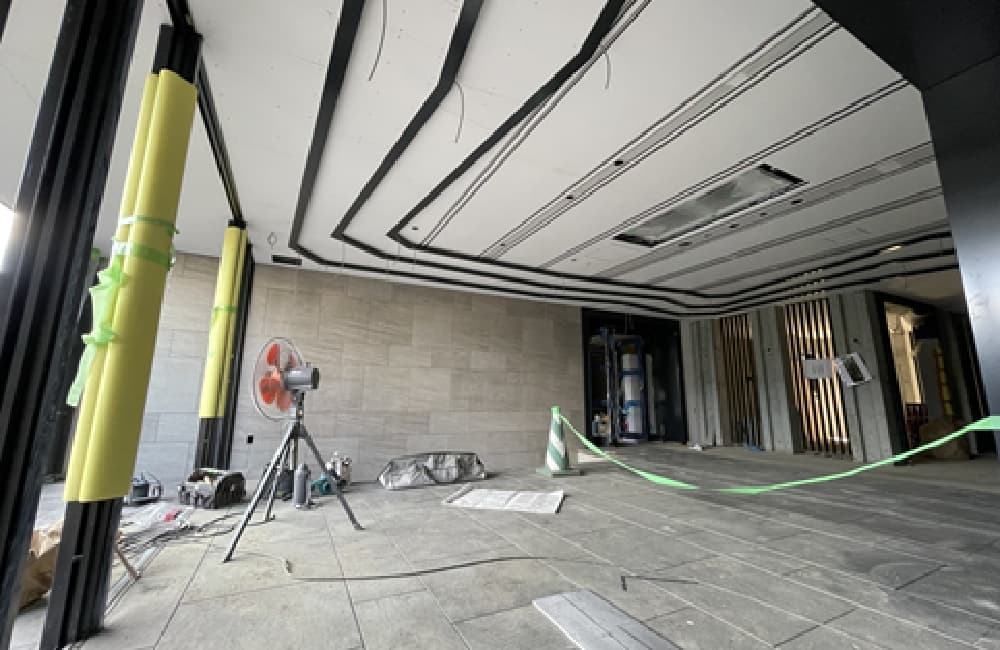 掘削工事が完了し、基礎配筋の施工を行っております。