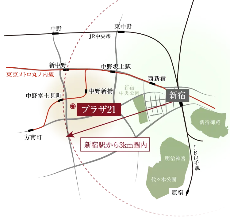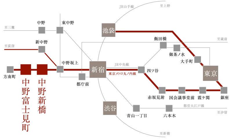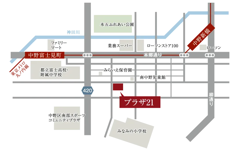 東京メトロ丸ノ内線「中野富士見町」駅 徒歩6分「中野新橋」駅 徒歩8分