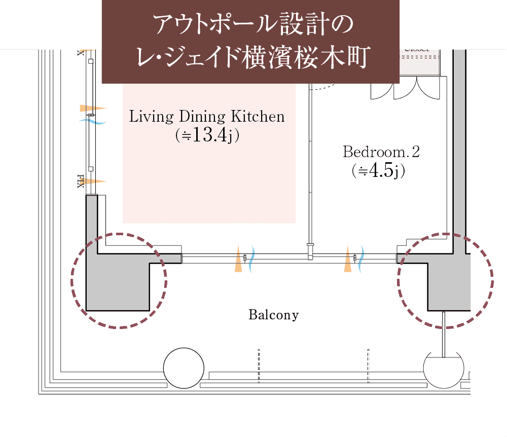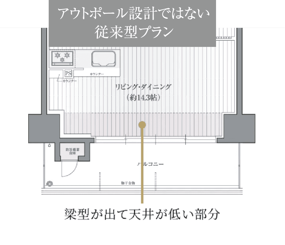 室内に柱型が出ないアウトポール設計を採用。
