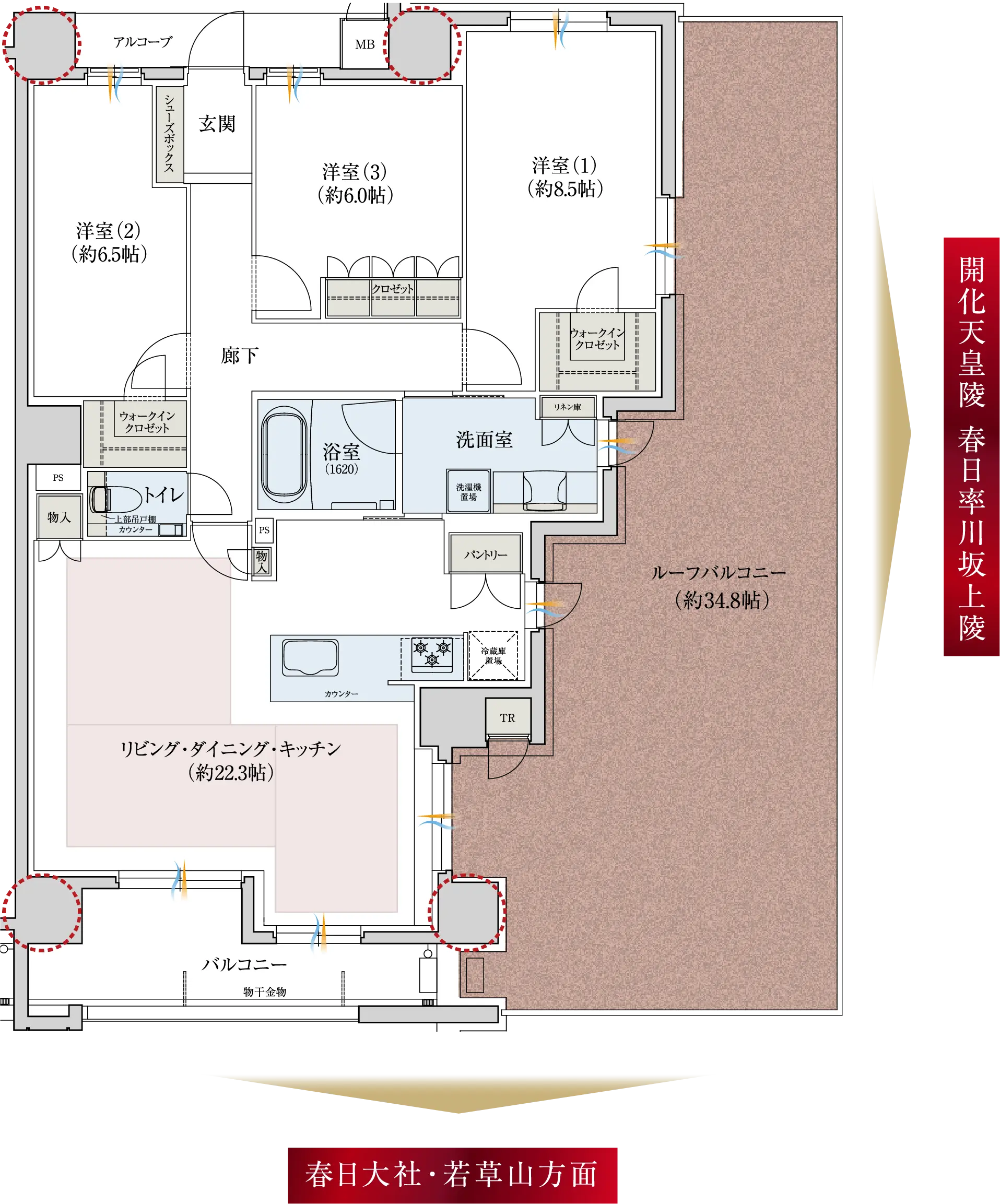 古都、奈良を見晴らす34.8帖のルーフバルコニー付住戸。