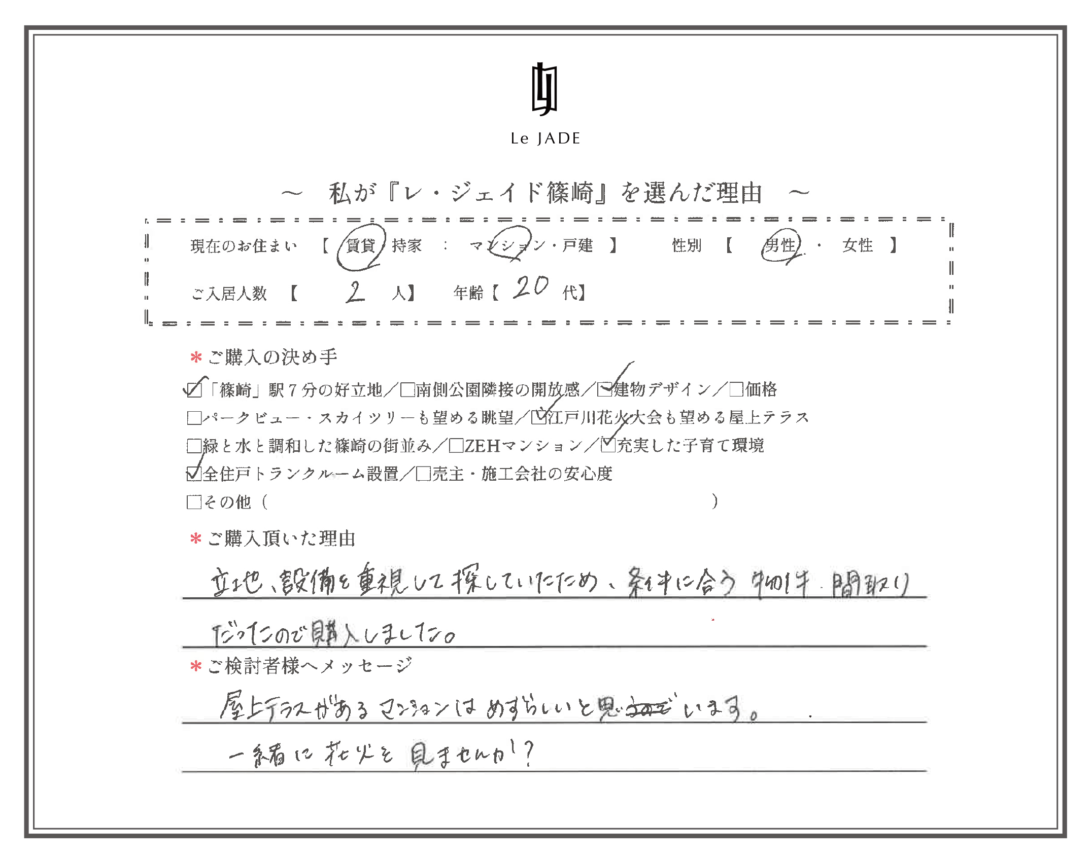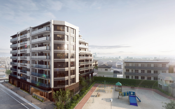※掲載の外観完成予想CG・屋上テラス完成予想CGは、図面を基に描き起こしたもので、建物の形状、仕様、色調、外構、植栽等は行政官庁の指導、施工上の都合及び改良のため、一部変更が生ずる場合があります。敷地周辺の建物・電柱・標識・架線・ガードレール・植栽等は、一部簡略化および省略しております。周辺の環境は将来変わる可能性があり、将来にわたって保証されるものではありません。植栽につきましては特定の季節の状況を表現したものではなく、竣工時には完成予CG程度には成長しておりません。また、季節ごとに咲く花々を同時に描いております。あらかじめ、ご了承ください。また花火は例年の江戸川区花火大会を参考に書き起こしたイメージで、打ち上げ位置・高さ・形状・色調・サイズ等は実際とは多少異なります。