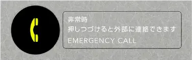 かご内の主操作盤・車いす操作盤に非常通話ボタンを設置。非常時に押し続けることで外部と連絡が可能です。