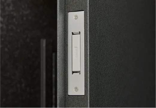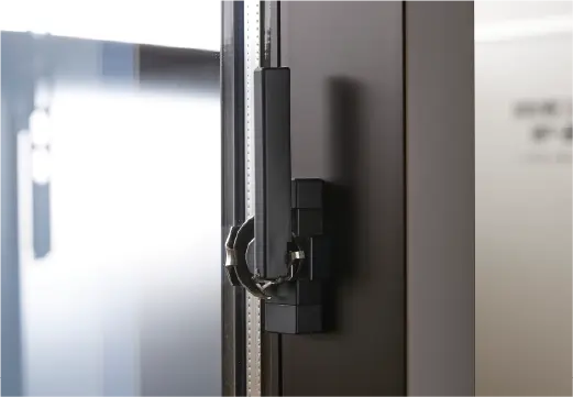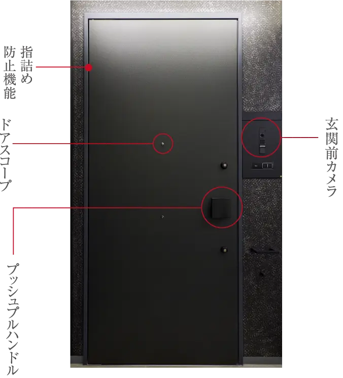 - 訪問者をチェックするドアスコープは、室内の明かりが漏れるのを防ぐカバー付き。