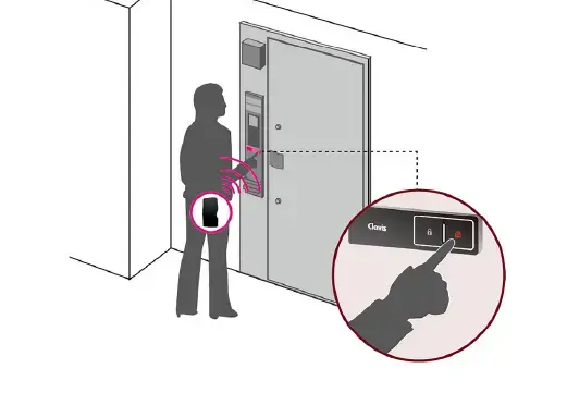 - 「Tebraキー」を鞄やポケットに入れたまま、専有部リーダのボタンを押すだけで玄関扉の施錠・解錠が可能です。