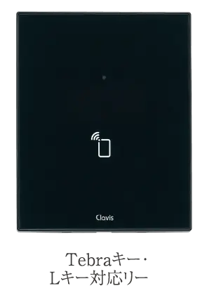 - Tebraキーを持つだけで、エレベータホールのリーダーに手をかざして認証されるとエレベータが降りてきます。居住者以外のエレベータへの立ち入りを制限できます。 ※TLキーの場合は、キーヘッドをリーダーにかざしてください。