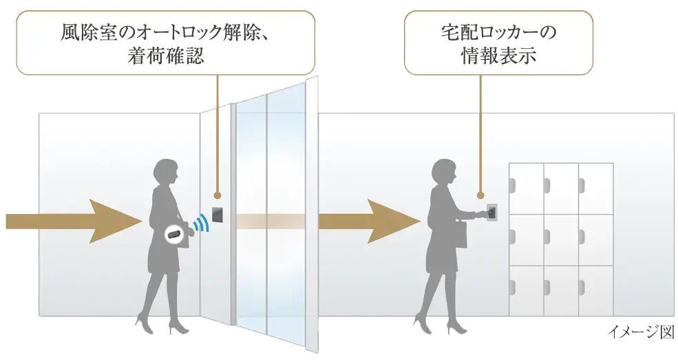 - Tebraキーをカバンやポケットに入れたまま近づくだけで、風除室のオートロックが開きます。