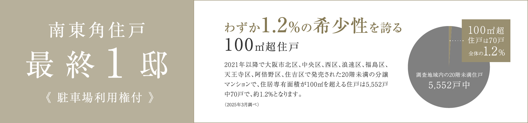 - ・100㎡を超える専有面積に広々とした居室を備えた2LDKプラン。