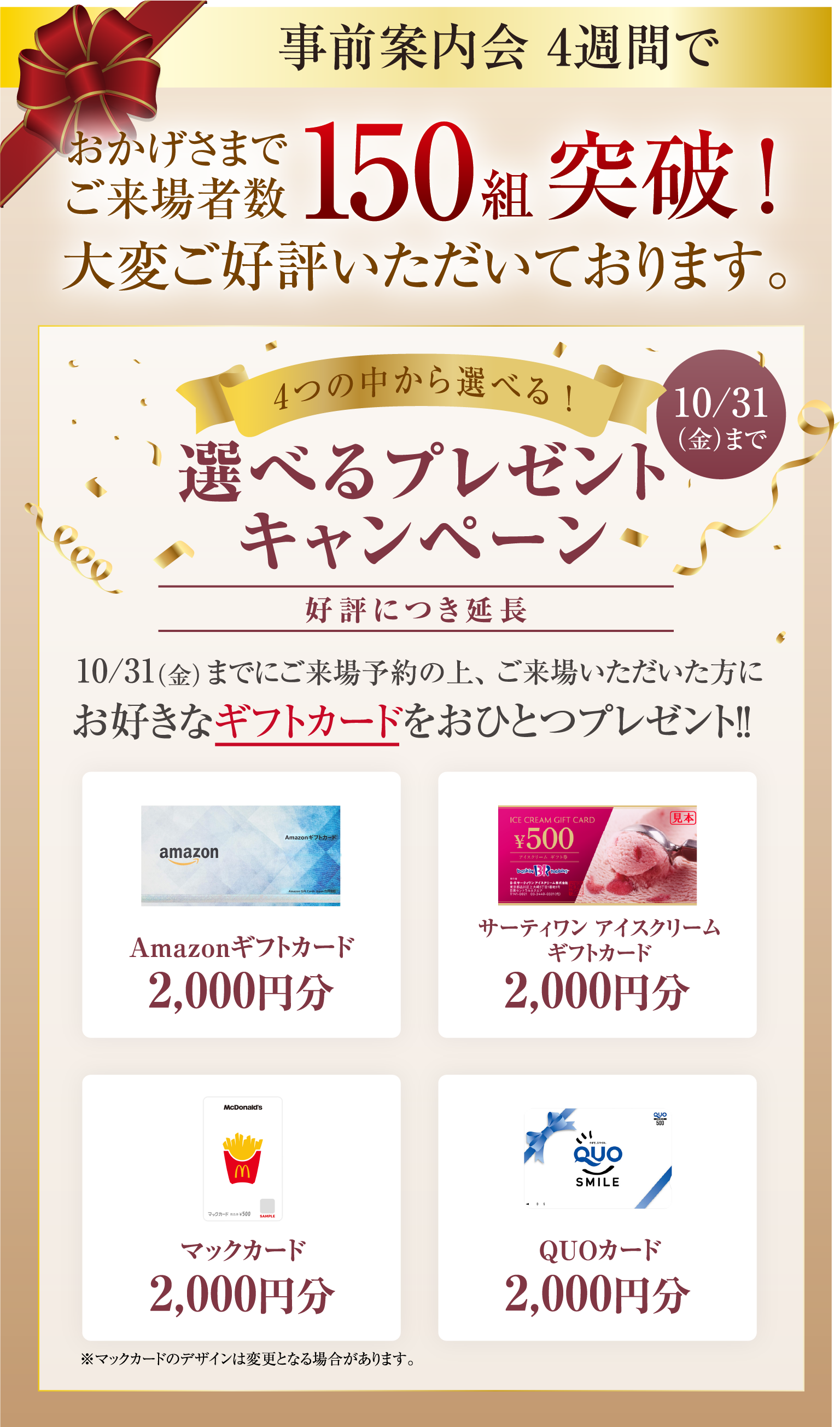 ※事前にご予約後ご来場され、アンケートに記⼊いただいた⽅限定です。※⾝分証明書の提⽰をいただく場合がございます。※アンケート記載内容に虚偽があると、係員の判断によりお渡しできない場合がざいます。※プレゼントは1組様につき1回限りとさせていただきます、他のキャンペーンとの併⽤はできません。※数に限りがございます。在庫がない場合は代替品のお渡しとなる場合がございます。※詳しくは係員にお尋ねください。※キャンペーン主催:株式会社エスコン※Amazonは、Amazon.com,Inc.または関連会社の商標です。