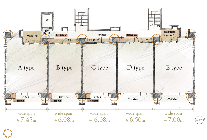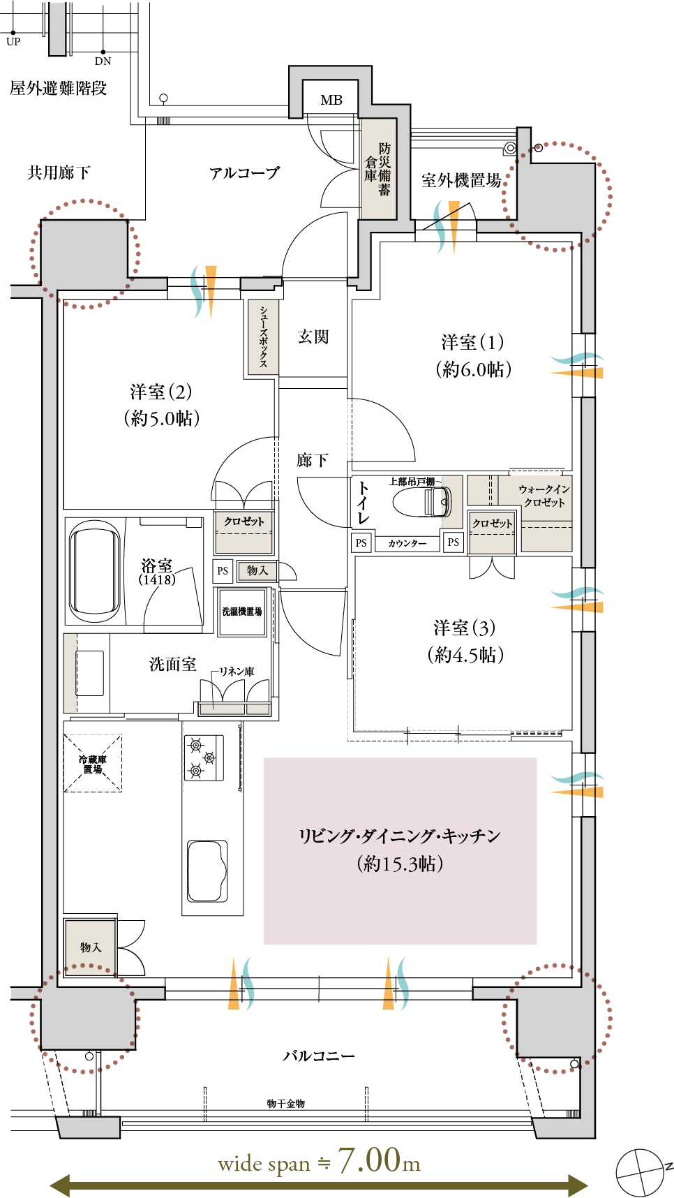 □ 通風・採光 に恵まれるワイドスパン・3面開口の東南角住戸。