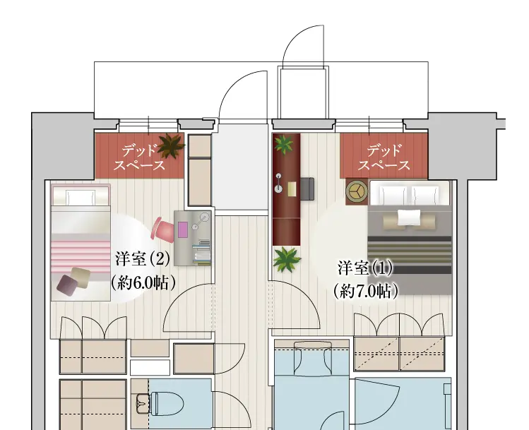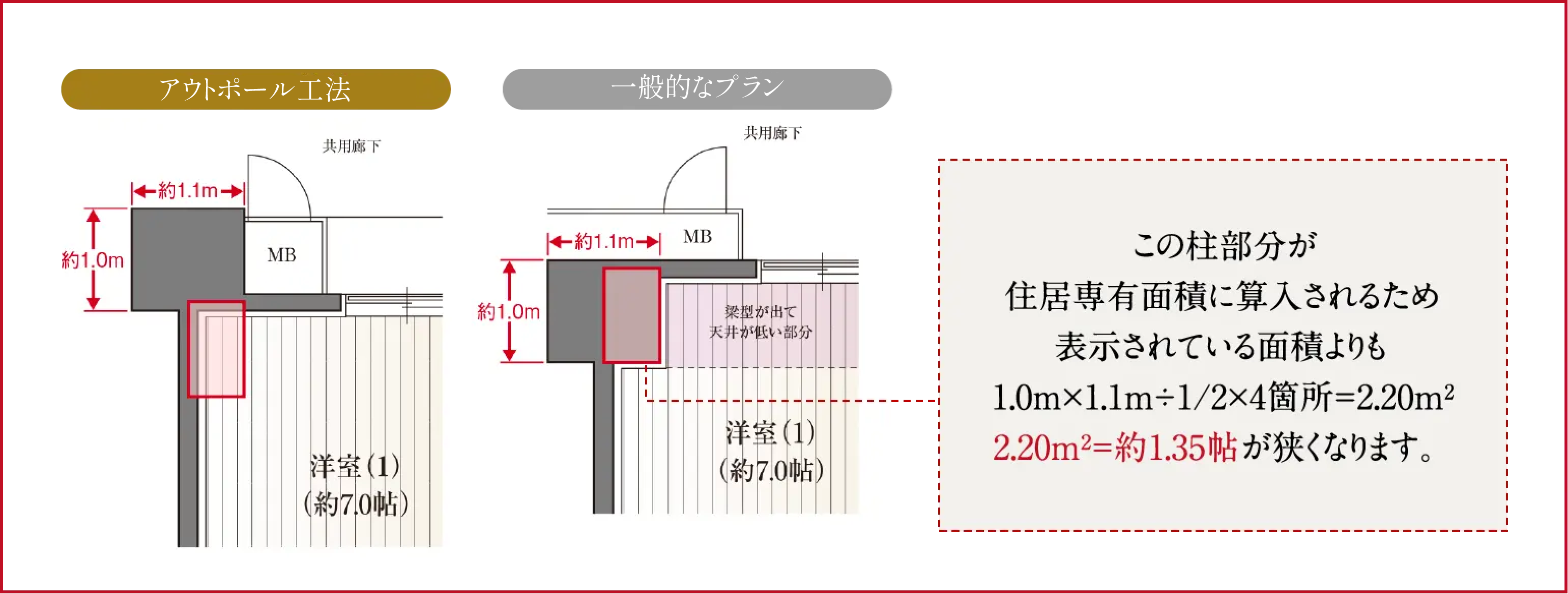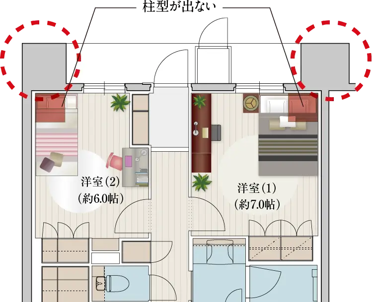 □ ダブルアウトポール工法で家具などの配置がスムーズ。
